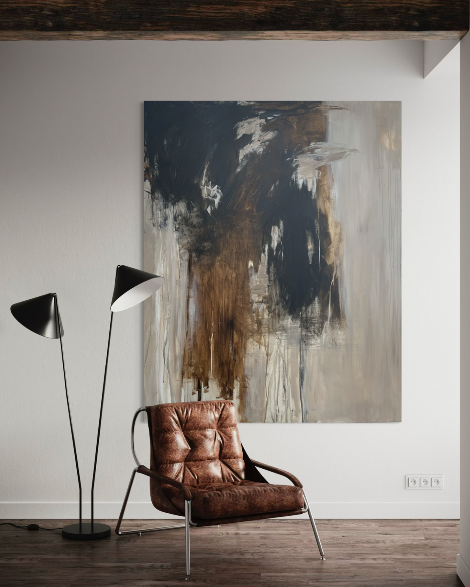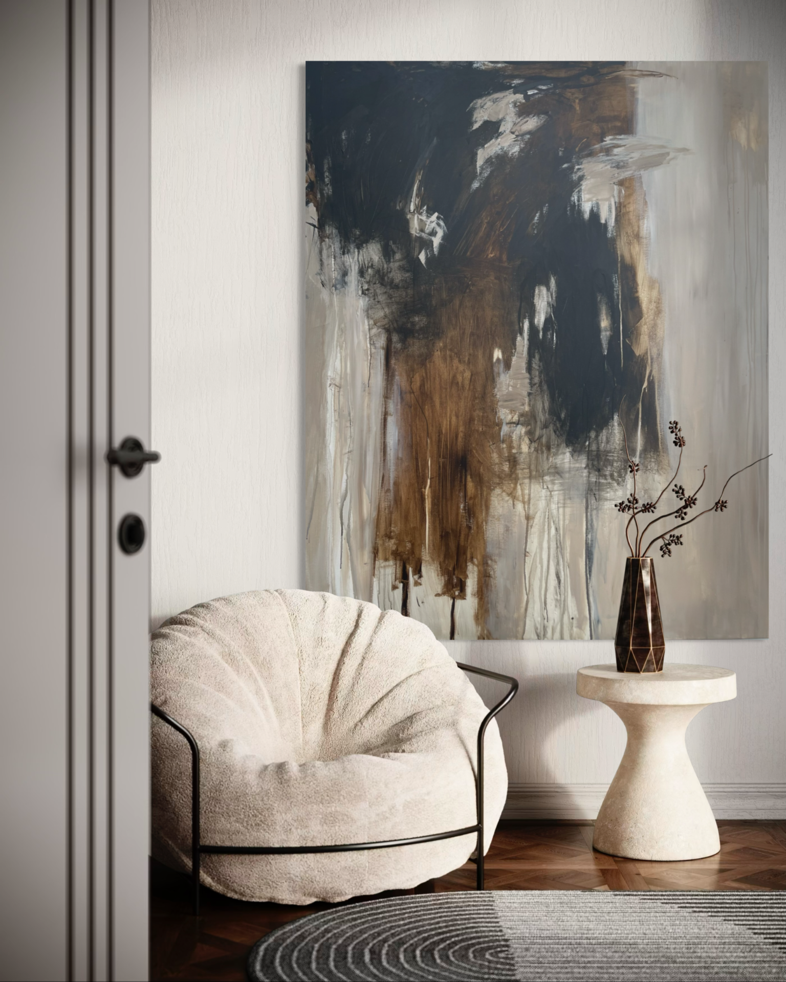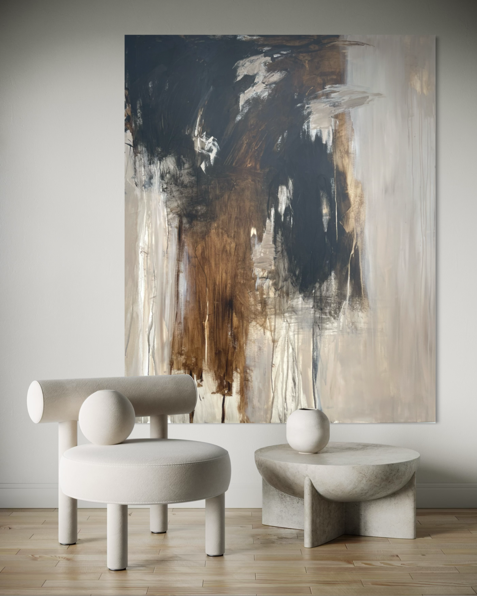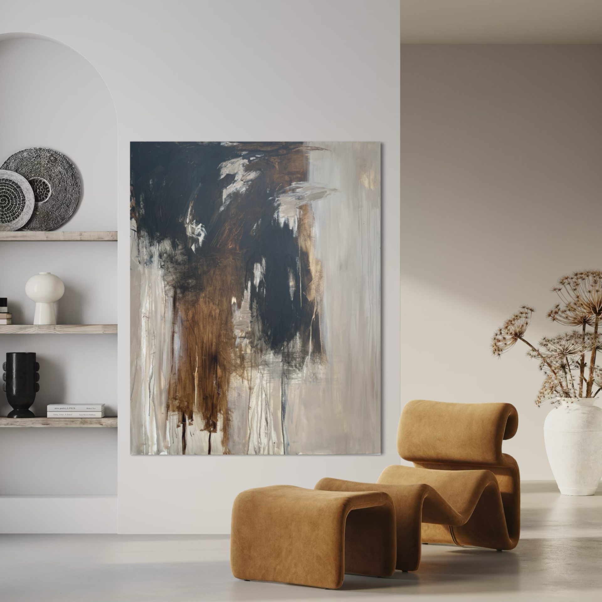 Originalt Abstrakt Maleri i beige, brune og sorte toner