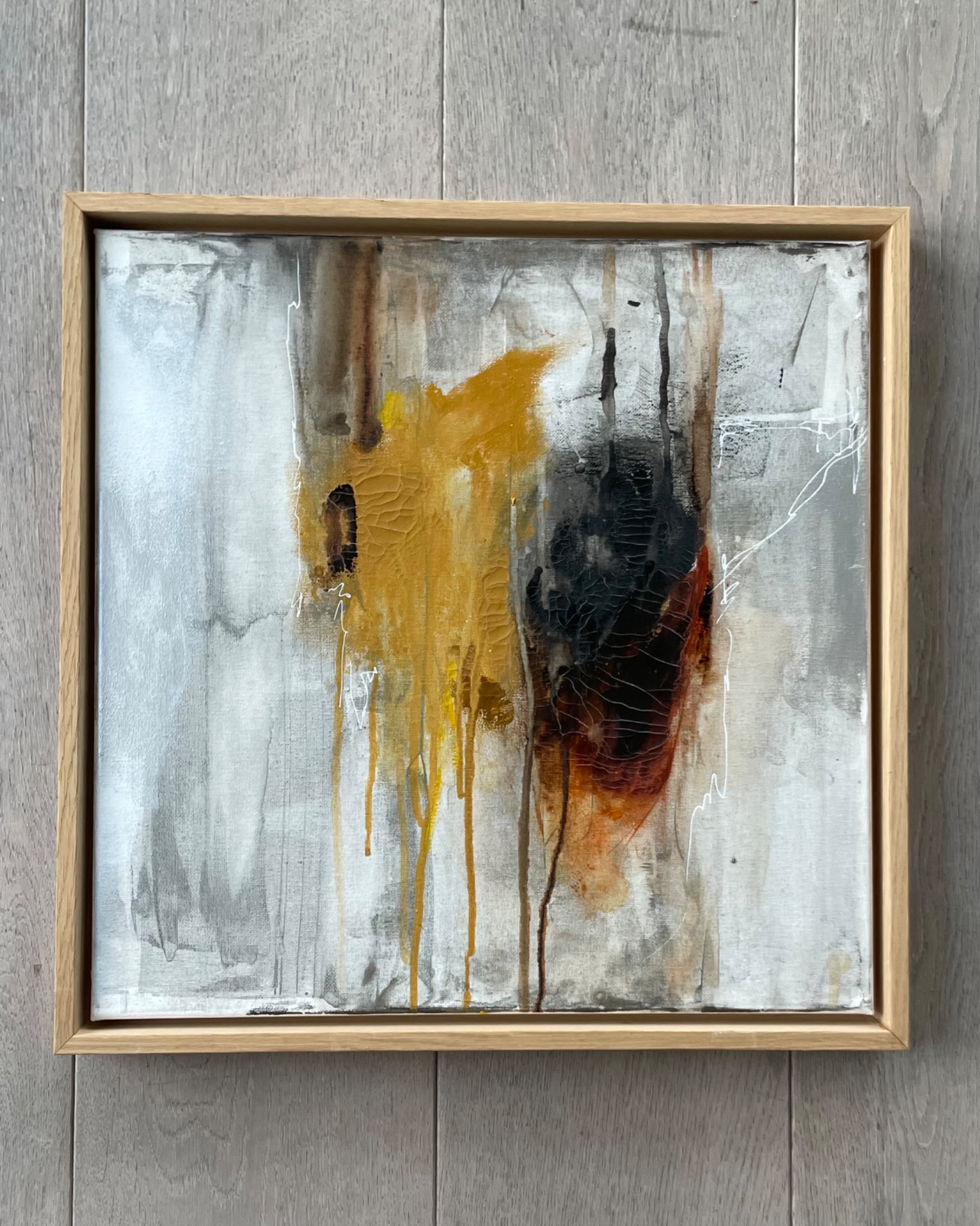 Abstrakt Maleri med lys egeramme - 40x40 cm